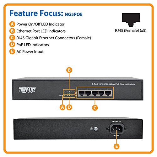 Tripp Lite 5-Port Gigabit Ethernet Switch Rackmount with PoE Metal 1U 10/100/1000Mbps (NG5POE)