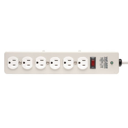 • SIX OUTLET METAL SURGE PROTECTOR WITH GRAY SIX-FOOT CORD: This surge suppressor provides six total NEMA 5-15R outlets. The 6-foot AC power cord acts like an extension cord to give you the flexibility to reach distant outlets.