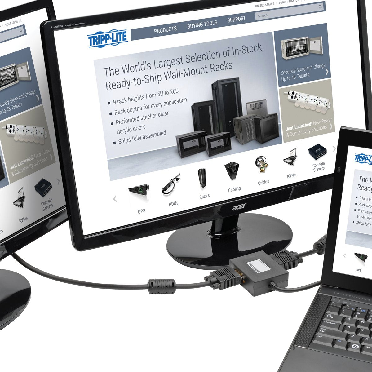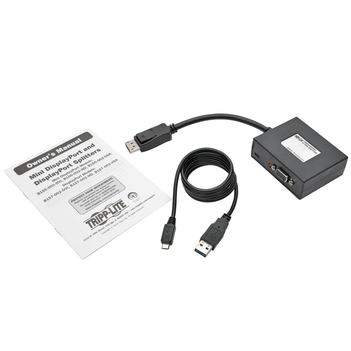 Tripp Lite B157-002-VGA 2-Port DisplayPort to VGA Splitter, Black