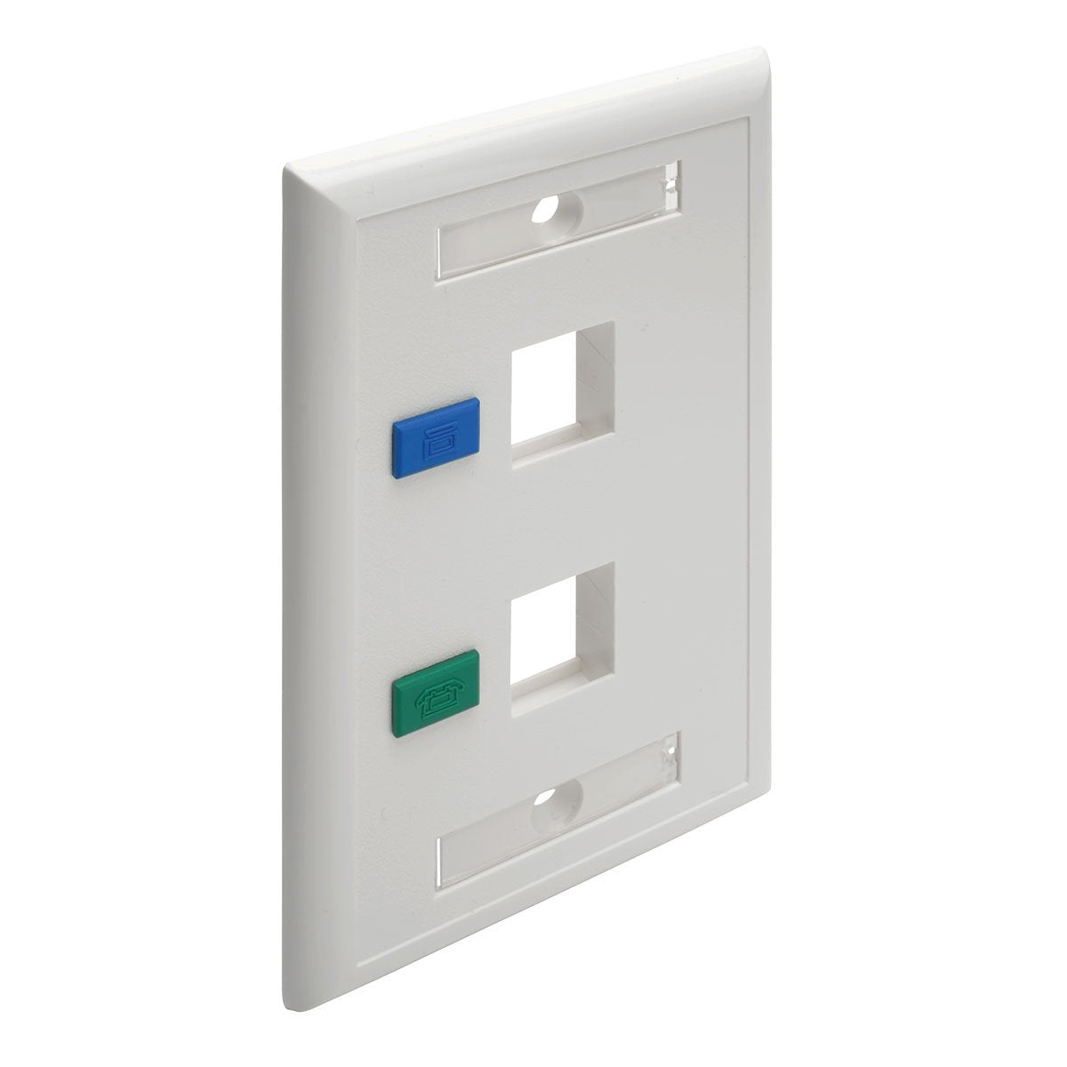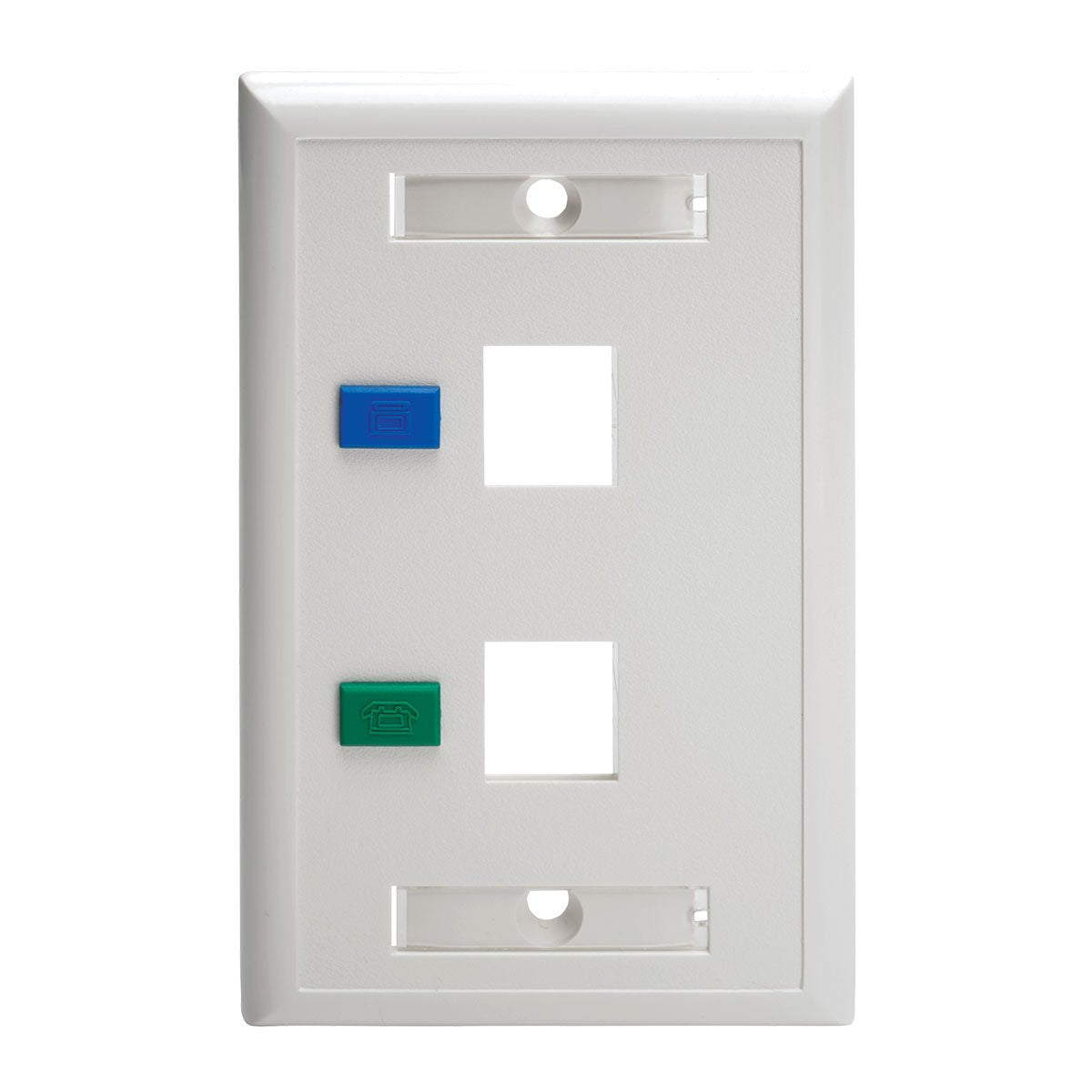 - Single Gang White Faceplate, 2 Keystone Cutouts