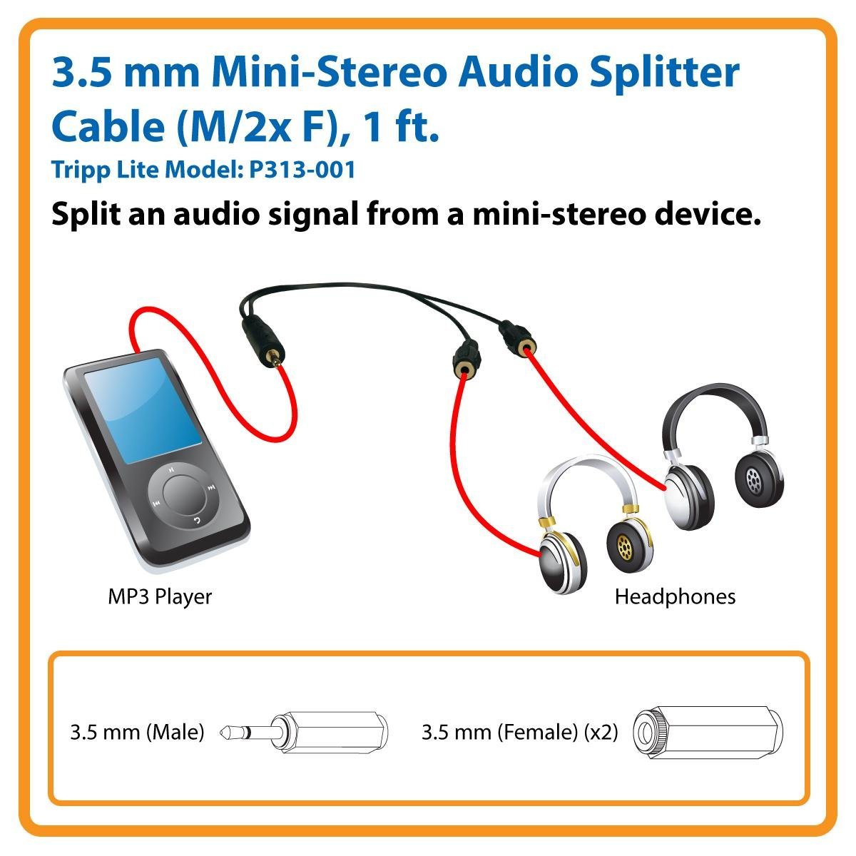 Tripp Lite P313-001 1 Foot Stereo Splitter Cable 3.5MM MALE/2 X 3.5MM Female
