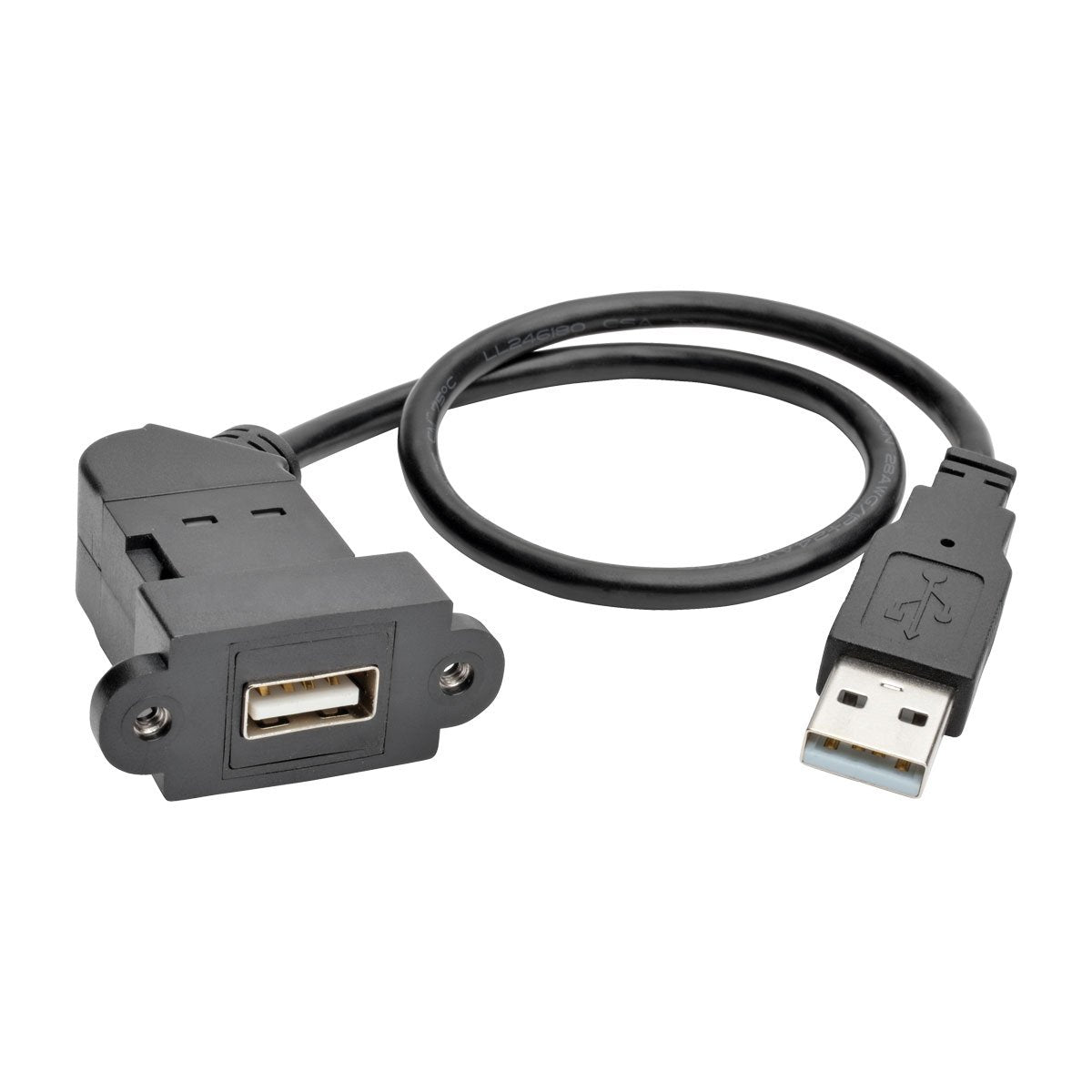 Tripp Lite USB 2.0 Keystone/Panel Mount Extension Cable (M/F), Angled Connector, All-in-One, 1' (U024-001-KPA-BK), Black