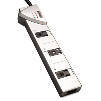 Details: tripp Lite's Tlp707tel Surge Suppressor Offers Complete Ac And Phone Line Surge Suppression For Comprehensive Protection Of Workstations, Desktop Pcs, Telecom Systems And Other Sensitive Electronics. Heavy Grade Ac Surge Suppression Shields Connected Equipment From Damage And Performance Problems Due To Transient Surges. Set Of Rj11 Telephone Line Suppression Jacks Protect Dialup And Dsl Modem Lines, Fax Machines, Cordless Phones And More. Tlp707tel Offers 7 Total Outlets, 7 Foot Cord With Space-saving Angled Plug, Automatic Cord Management And Diagnostic Leds To Warn Of Wiring Problems And Suppressor Damage. Heavy Grade Ac Suppression Rated At 1080 Joules Shields Equipment From Surges And Line Noise. Attractive Metallic Silver Housing With 3 Designated Transformer Plug Outlets Offers Convenient Protection Of Desktop Computer Equipment And Accessories. Lifetime Warranty With $50,000 Ultimate Lifetime Insurance (usa Canada Only).