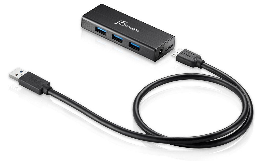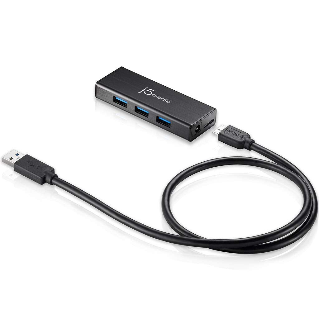 USB 3.0 4-Port Mini HUB by j5create | Portable Adapter, USB 3.0/2.0 for Windows, Mac OS, Linux OS Black