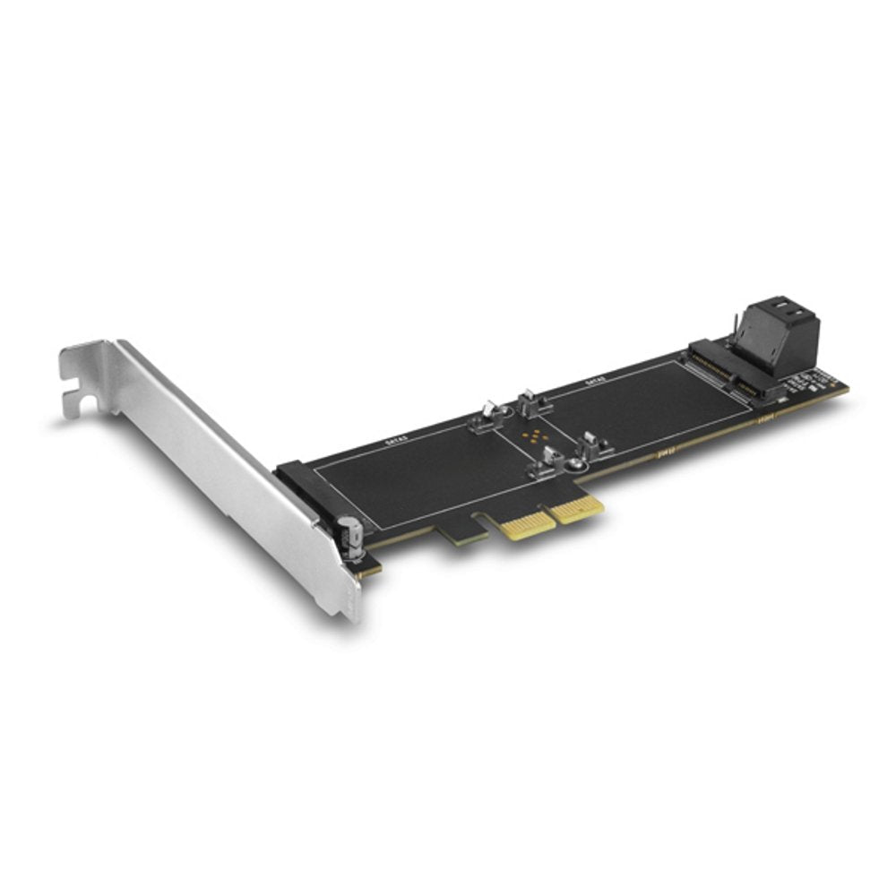 - Mounts two mSATA SSDs and two SATA HDDs/SSDs in PCIe slot
