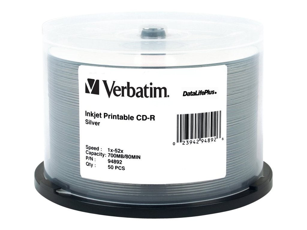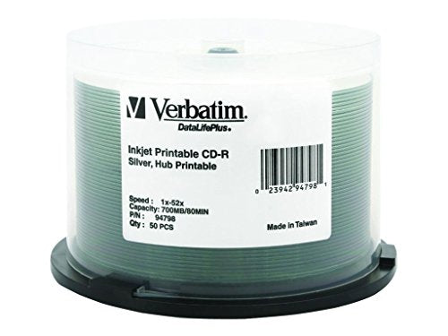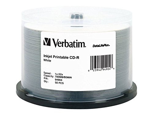 Verbatim 94755 700 MB 52x 80 Minute DataLifePlus White Inkjet and Hub Printable Recordable Disc CD-R, 50-Disc Spindle