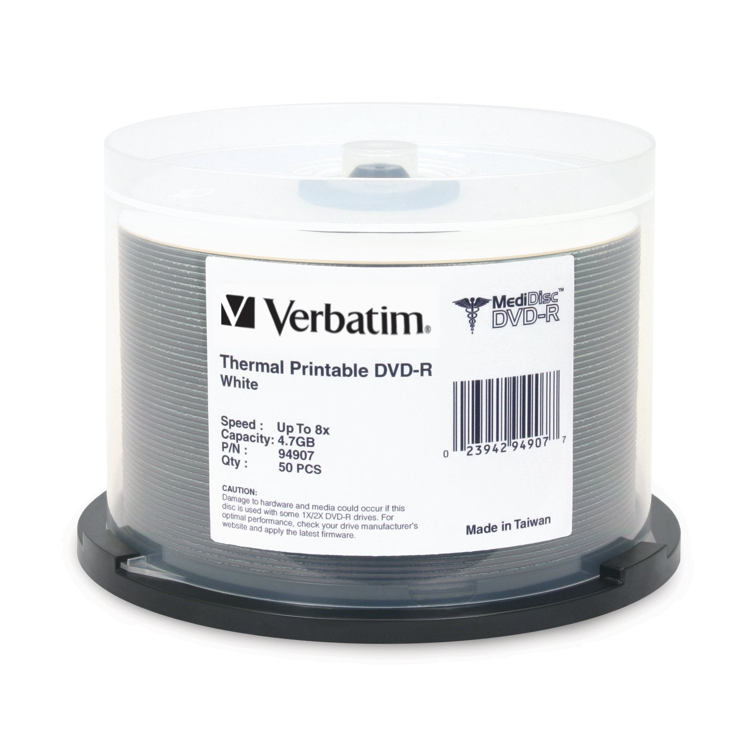 Verbatim MediDisc DVD-R 4.7GB 8X White Thermal Printable 50 Disc Spindle 94907