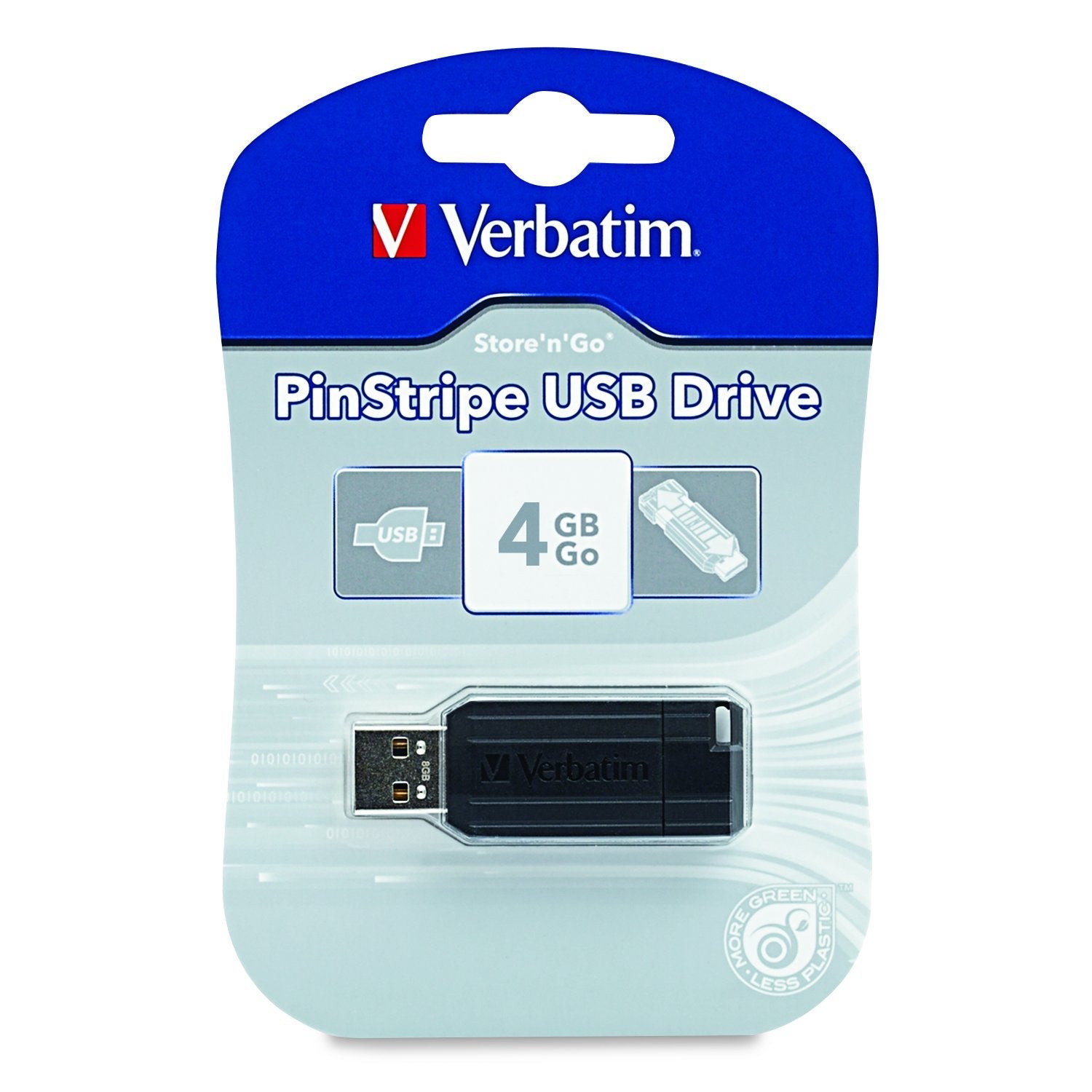 Verbatim PinStripe 4 GB USB 2.0 Flash Drive, Black 49061