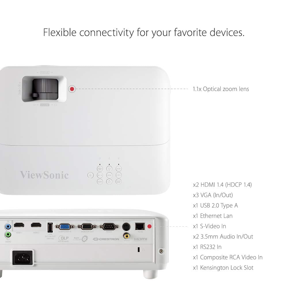 ViewSonic PG706HD 4000 Lumens Full HD 1080p Projector with RJ45 LAN Control Vertical Keystoning HDMI USB for Home and Office