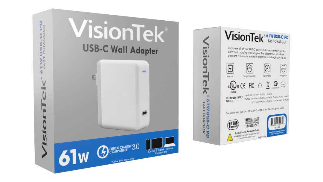 Visiontek USB-C 61W Quick Charge US Plug Adapter