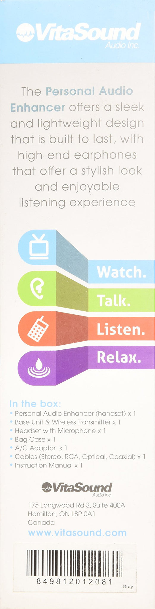 Details: The VitaSound All-In-One is the ultimate Hearing Helper. This multi-mode Personal Audio Enhancer is powered by patented NC AudioTM technology and provides full digital-stereo sound in all 4 modes: Watch (TV), TALK (face-to-face), Listen (cell phone), Relax (tinnitus).
