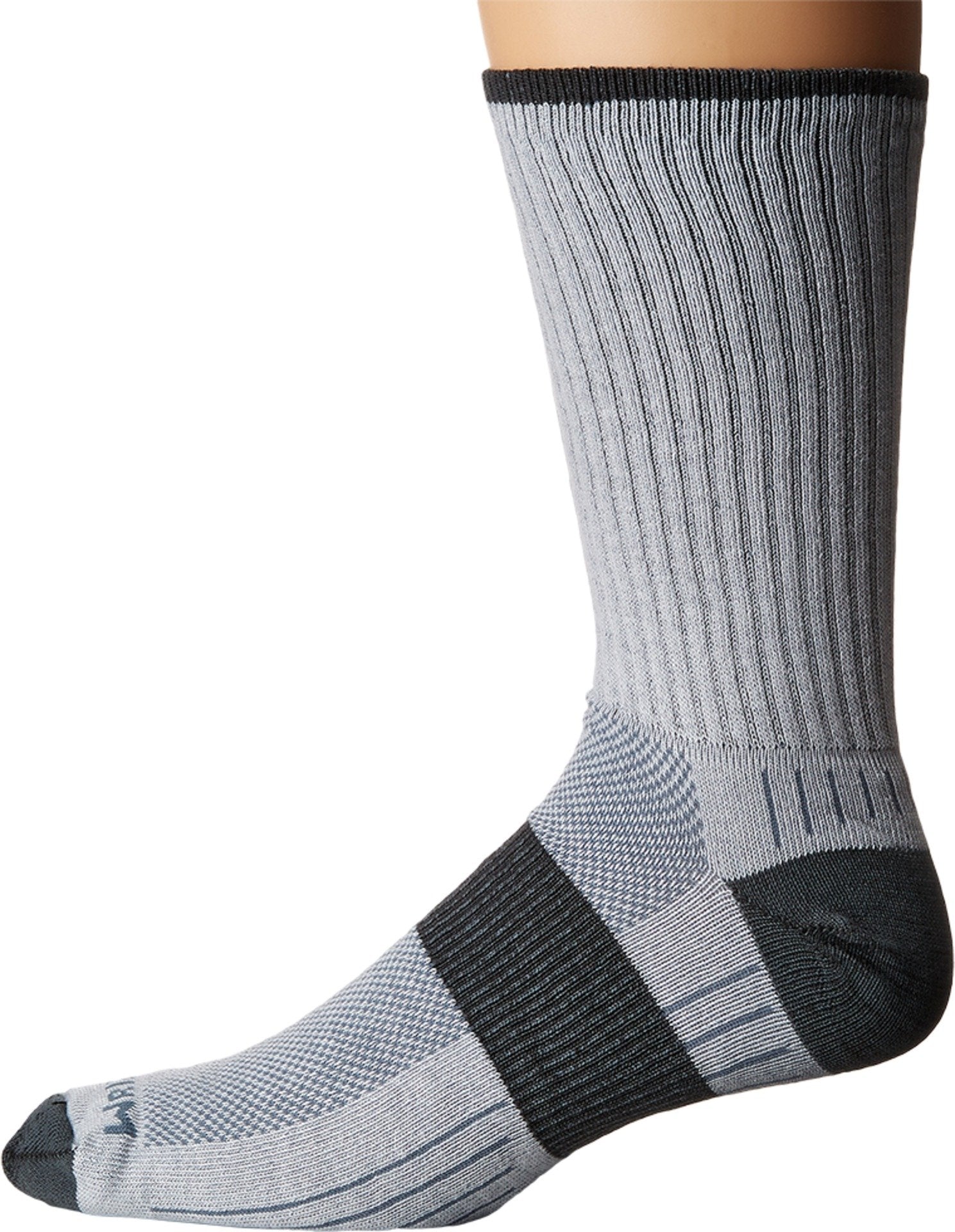 Details: Hike your favorite trail in pure comfort with the versatile Wrightsock® DL Escape crew sock! Sold in a one-pair pack. Crew sock in a poly-nylon blend. Dri-WRIGHT™ll performance yarns improve moisture management and increased durability. Stabilizer Zone™ to help lock the sock in place. Lightly cushioned footbed in inner layer. Mesh panel for breathability. Materials:Inner Layer: 70% Dri-Wright® II Polyester, 26% Nylon, 4% Lycra®;Outer Layer: 68% Dri-Wright® II Polyester, 24% Nylon, 8% Lycra®. Machine wash, line dry. Made in the USA.