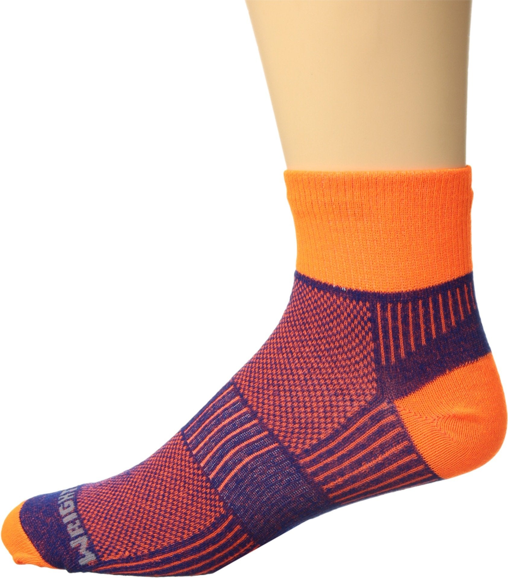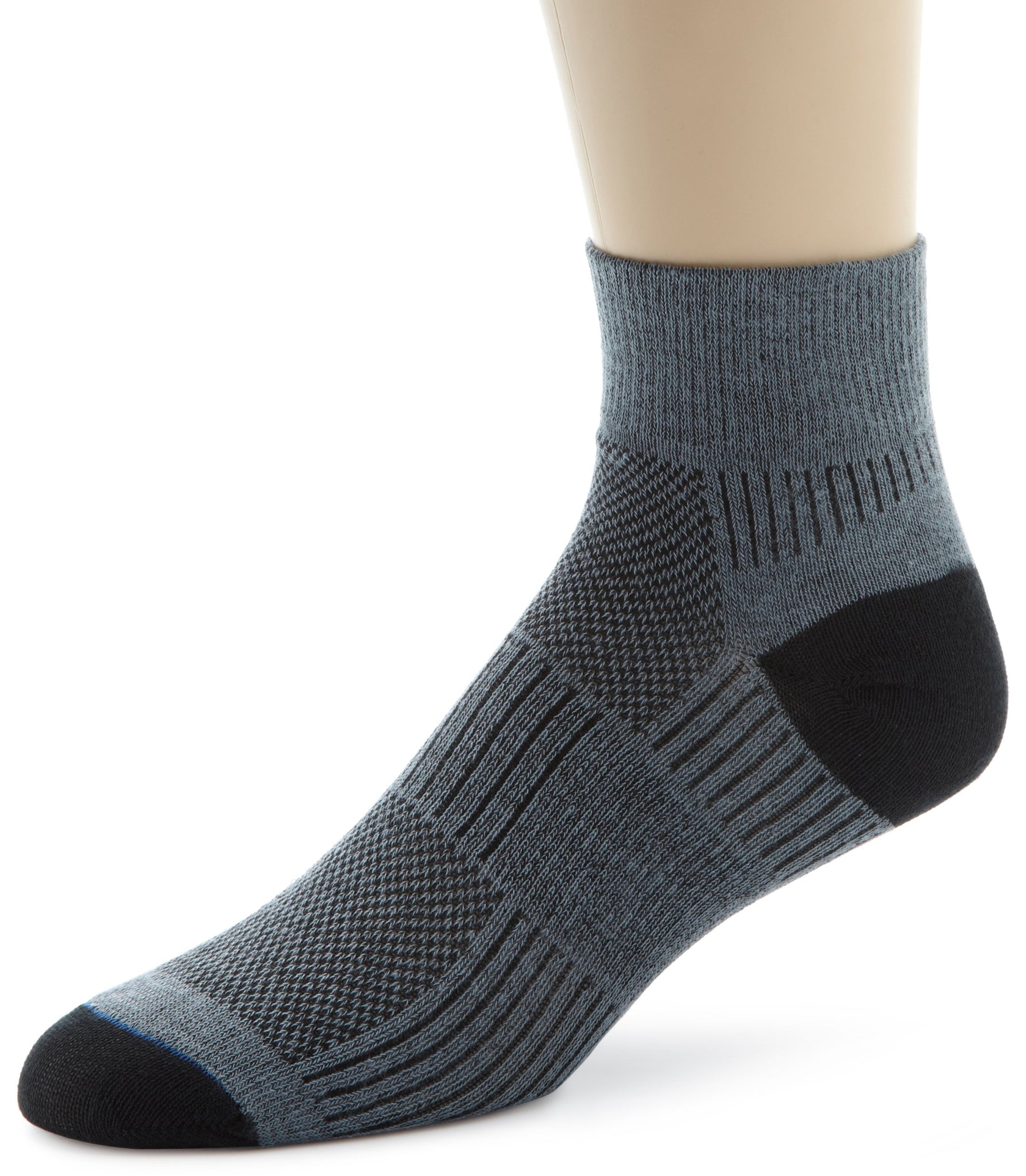 Details: The Wrightsock® Coolmesh II Quarter is a mesh of breathable fabric and soft cushioning for a complete wear all-day! Sold as a one-pair pack. Quarter-cut sock sits above the ankle. Dri-WRIGHT™ II moisture-managing fibers help feet stay cooler and drier. Double Layer construction is both lightweight and minimal for optimal comfort. Mesh panel at top of foot for enhanced breathability. Heel tab prevents blistering. Stabilizer Zone in arch. 71% polyester, 24% nylon, 5% Lycra® Spandex. Machine wash cold. Tumble dry low. Made in the USA.