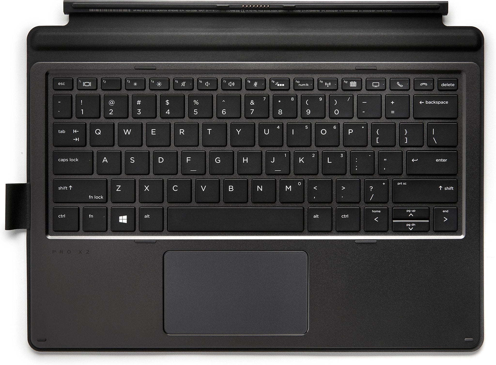 Details: HP Pro x2 612 Collaboration Keyboard - Docking Connectivity - Docking Port Interface - English (US) - TouchPad - Compatible with Tablet (Windows) - Volume Control, End, Answer Call Hot Key(s) - QWERTY Keys Layout - Scissors - Black