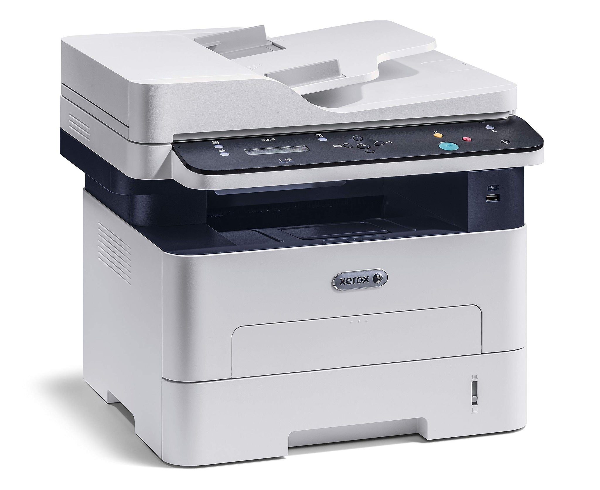 - Xerox B205NI is a lightweight, compact, quiet black and white multifunction printer offering print/copy/scan and standard wireless connectivity, 2-line LCD user interface, 40-sheet Automatic Document Feeder, Standard Paper Capacity of 250 sheets/1 sheet manual feed slot while printing on a wide assortment of media types plain, thick, thin, cotton, colored, pre-printed, recycled, transparency, label, cardstock, bond and archive